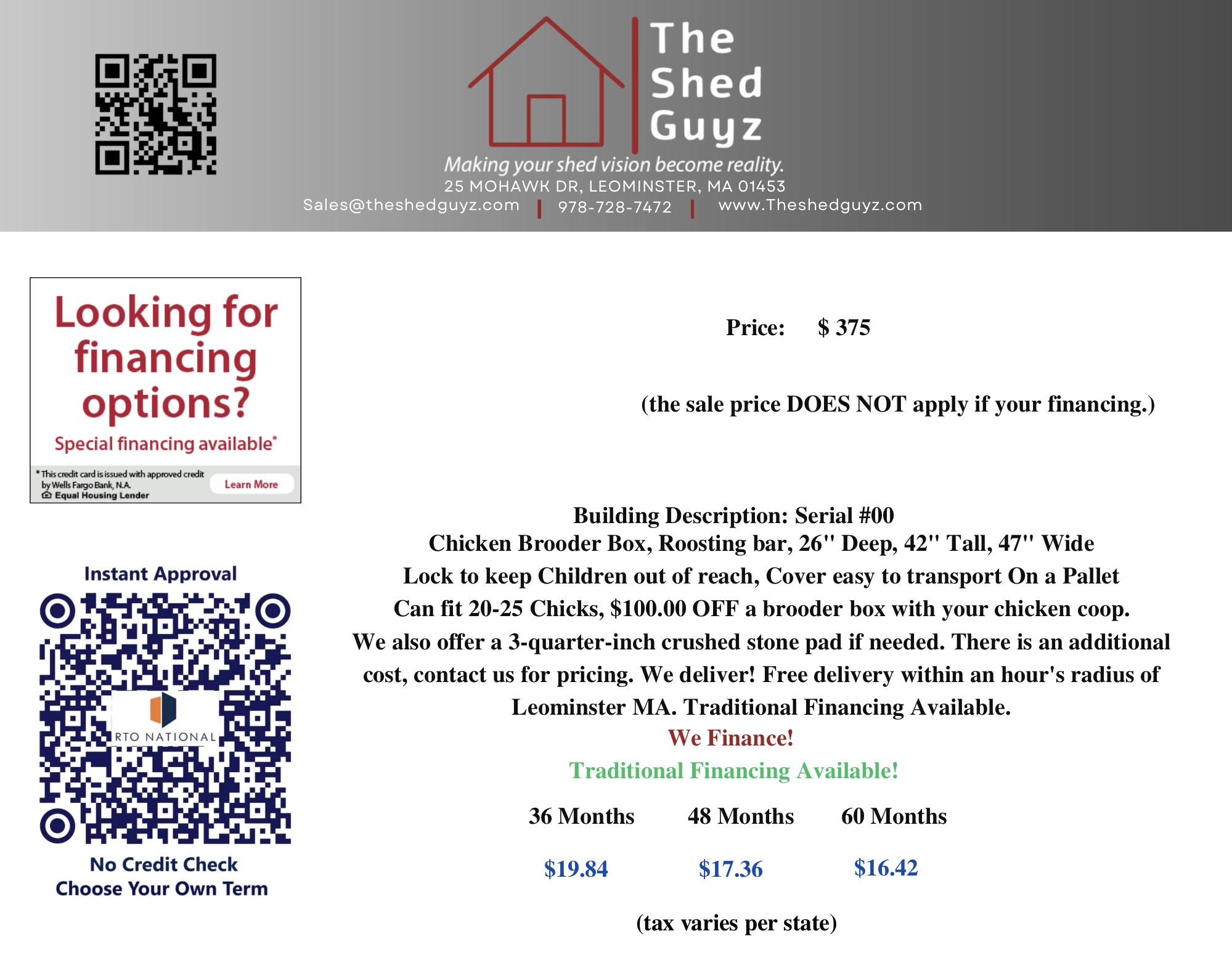 $100.00 OFF  a brooder box with your chicken coop