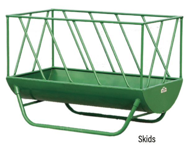 Feeds calves grain and small bales or loose hay with this feeder. Can be easily dragged around to move it to a new location