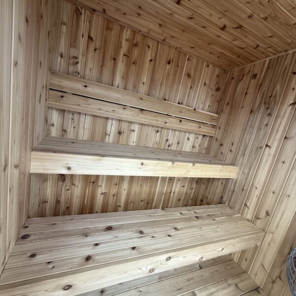 Flooring: Cedar Deck board Floor (for easy washing of sauna)