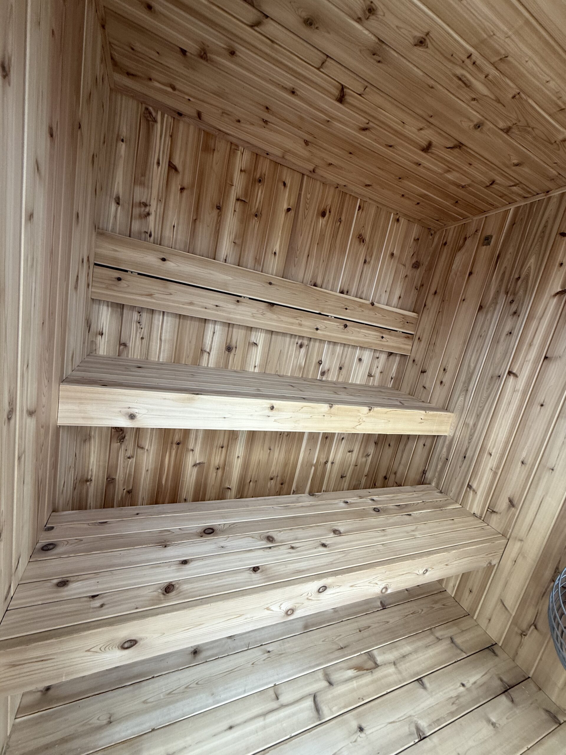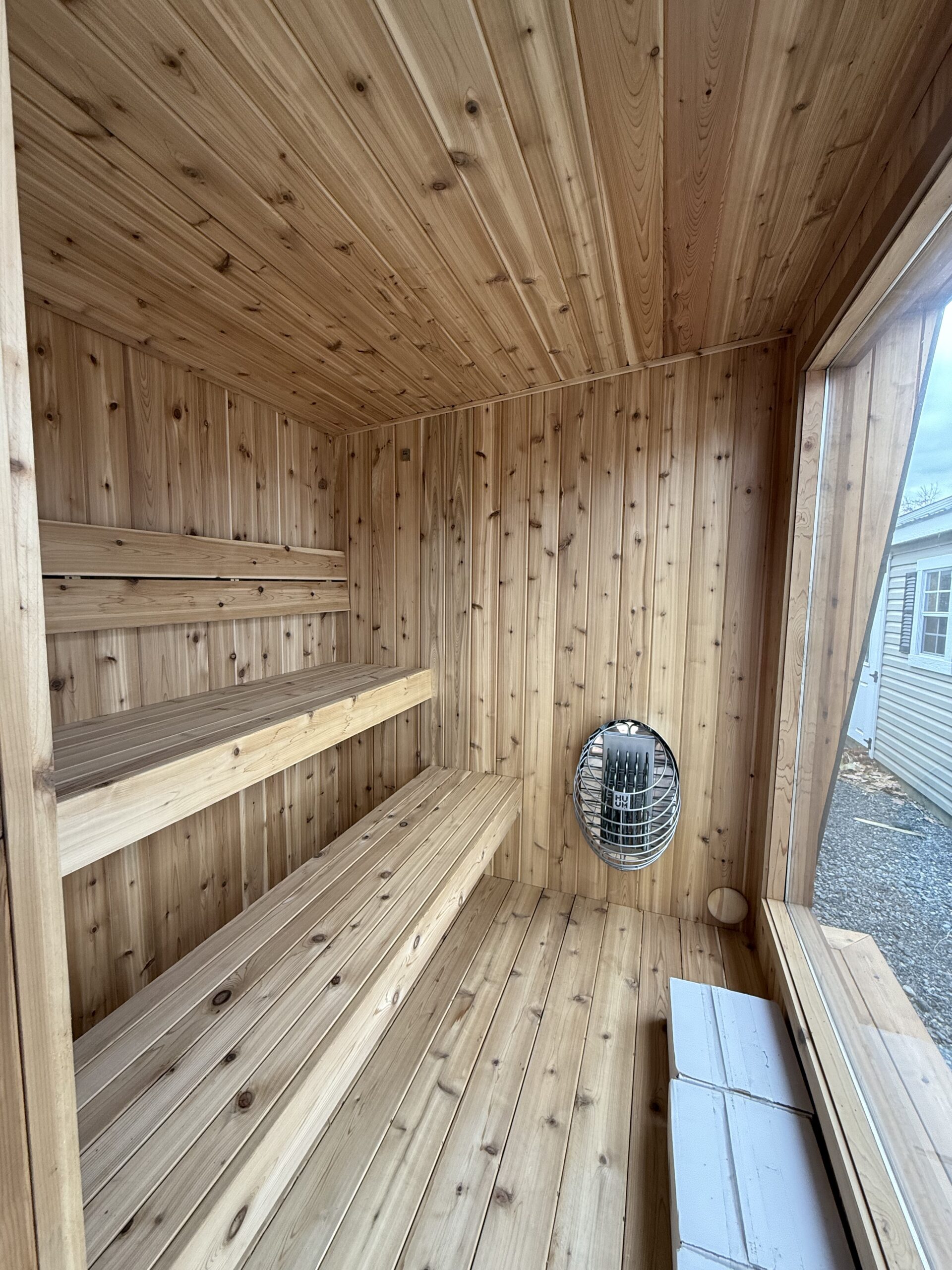 Flooring: Cedar Deck board Floor (for easy washing of sauna)