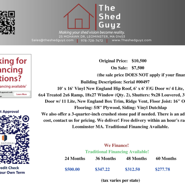 10′ x 16′ Vinyl New England Hip Roof Serial #00374