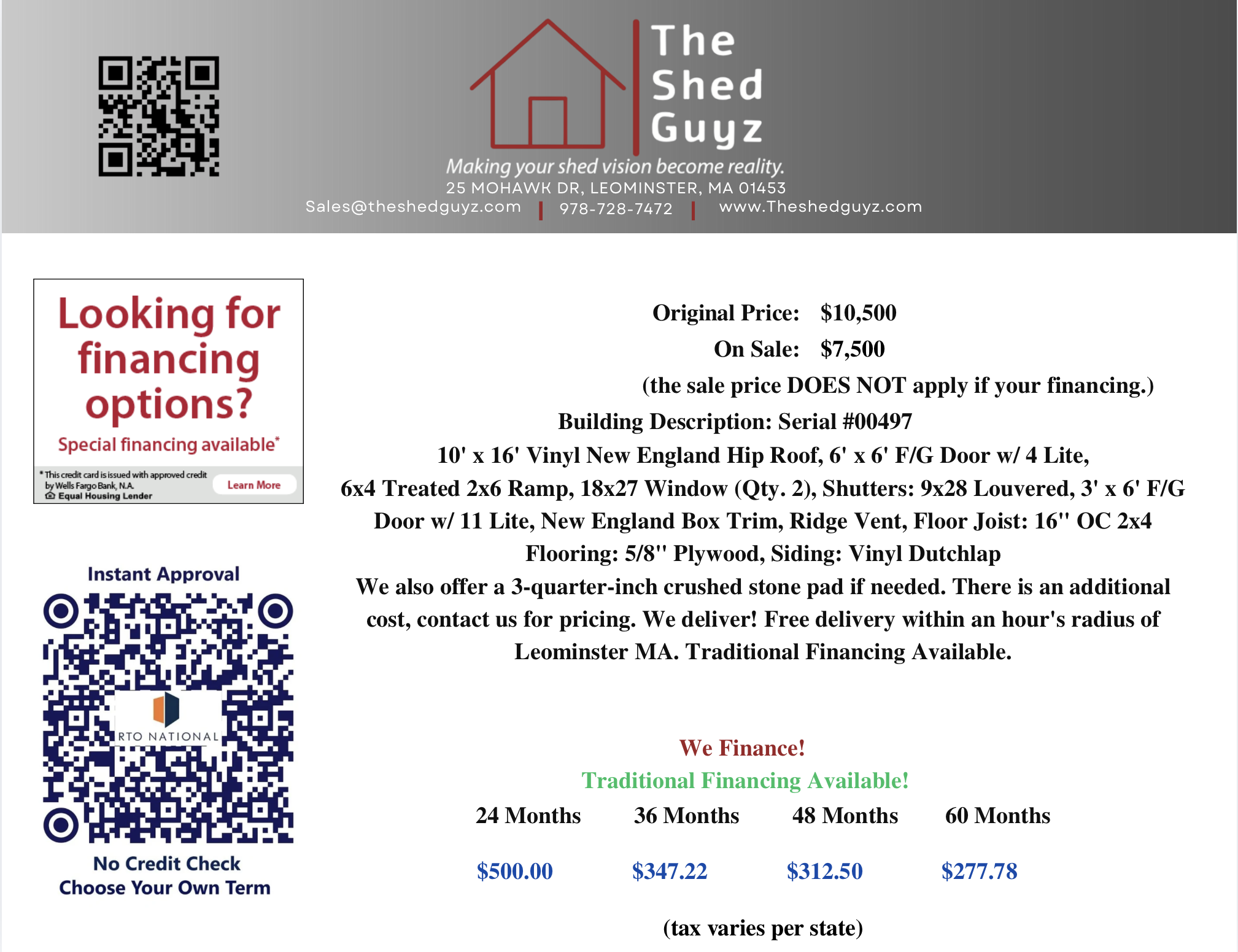 Pay as low as $314.81 a month! No sales tax included.